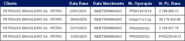 Informamos também que mantemos contrato de fiança relacionados abaixo com a Petrobras, em conformidade com a legislação aplicável, reforçando nosso compromisso com a ética e prezando pela transparência em todas as nossas relações: