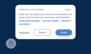 No entanto, sempre será possível rever as preferências sobre quais tipos de Cookies o Banco poderá usar, considerando que após a definição inicial, o aviso de Controle de Privacidade é minimizado, e poderá ser acessado novamente, a qualquer momento, através de seleção da imagem do cadeado (“Widget”) no canto inferior esquerdo de qualquer página do site do Banco, conforme imagem a seguir:
